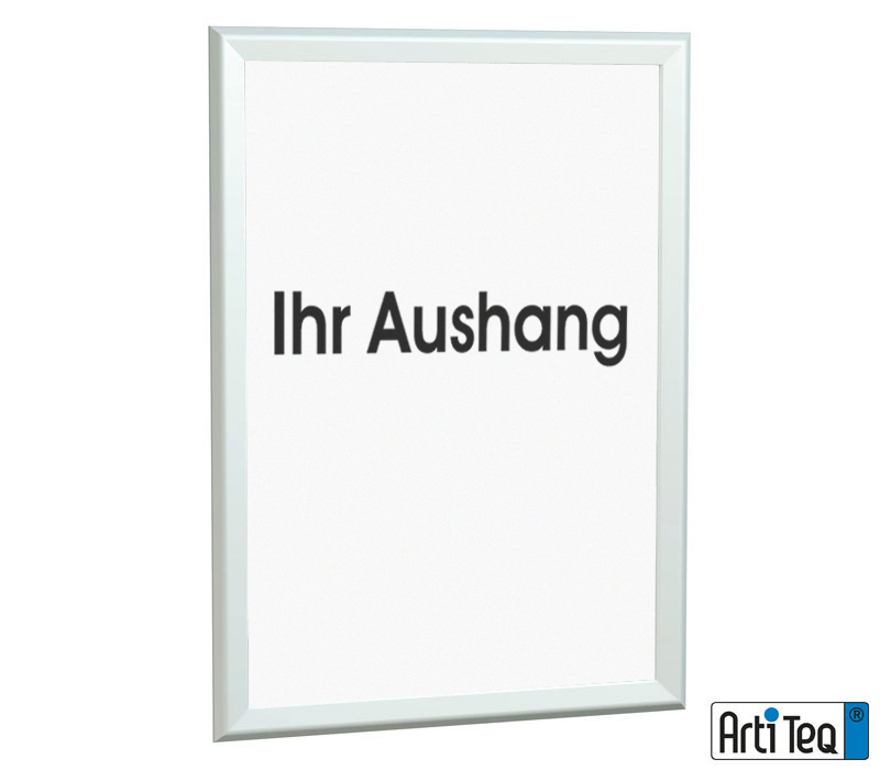 Schutzfolie für die Plakatabdeckung ausgestattet. Die Rahmen werden in den Formaten von DIN A5 und DIN A4 bis DIN A0 angeboten und für Werbeplakate, Poster, Bilder, Betriebsinformationen oder andere Aushänge verwendet.
