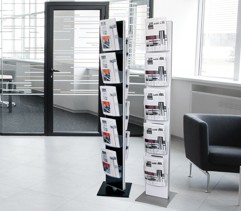 - eleganter freistehender Prospektständer in Farben Weiß oder Schwarz